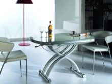 Transformatoren - Für sie ist es üblich, jene Modelle zu verstehen, die nicht nur die Breite, sondern auch die Höhe ändern können. Dies ist besonders praktisch für Küchen in Kombination mit einem Wohnzimmer, da ein voller Esstisch jederzeit in einen kompakten Couchtisch verwandelt werden kann.