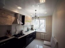 Bei niedrigen Decken wird die Situation durch rotierende Strahler gerettet, von denen Licht an die Decke gesendet wird. Zusätzlich befinden sich die Lampen an den Wandschränken. In solchen Fällen wird das Aufhängen von Kronleuchtern nicht empfohlen.
