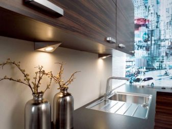 Es ist auch notwendig, sich daran zu erinnern Der Stil des Raumes sollte nicht verletzt werden. Scheinwerfer werden in den Regalen in einer großen Auswahl präsentiert, so dass es keine Schwierigkeiten bei der Auswahl der Geräte für die Küche gibt, die beispielsweise im High-Tech- oder modernen Stil hergestellt werden.