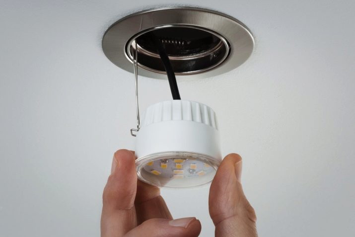 Unter den Lampen selbst sind Glühlampen, LED- oder Halogenvorrichtungen zu erkennen. Ich muss sagen, dass LEDs aufgrund ihrer Effizienz und der Tatsache, dass sie sich fast nicht erwärmen, besonders beliebt sind. Sie können unabhängig von der Oberfläche verwendet werden, da auch brennbare Materialien in unmittelbarer Nähe platziert werden können. Und es ist absolut sicher, da Feuer ausgeschlossen ist. Sie können entweder drehbar sein, die Lichtrichtung ändern oder fest sein.