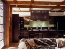 Durch die Verwendung von Deckenbalken können Sie auch die Größe des Raums erweitern. Ihre Farbe sollte im Vergleich zur Decke einige Töne heller sein.