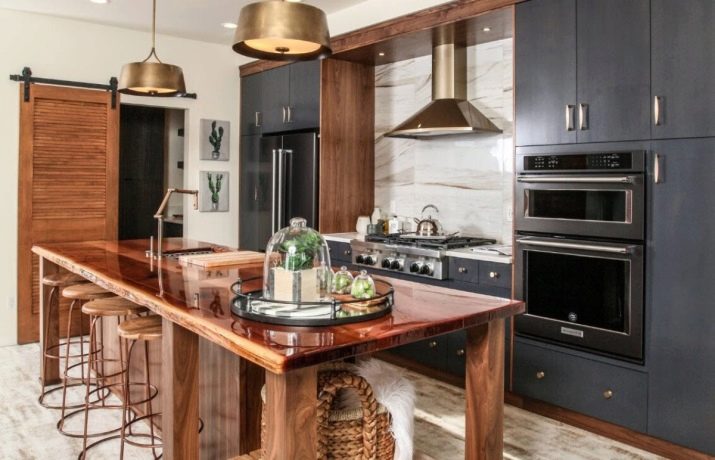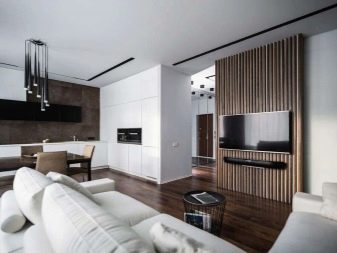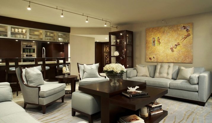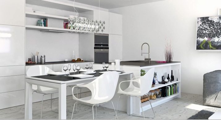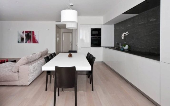 Damit die Küche in Kombination mit dem Wohnzimmer stilvoll und komfortabel aussieht, müssen Sie die Empfehlungen von Spezialisten befolgen. Zunächst sollten der Arbeitsküchenbereich und der freie Raum im Wohnzimmer im gleichen Stil eingerichtet werden.