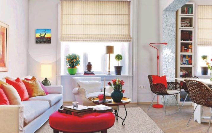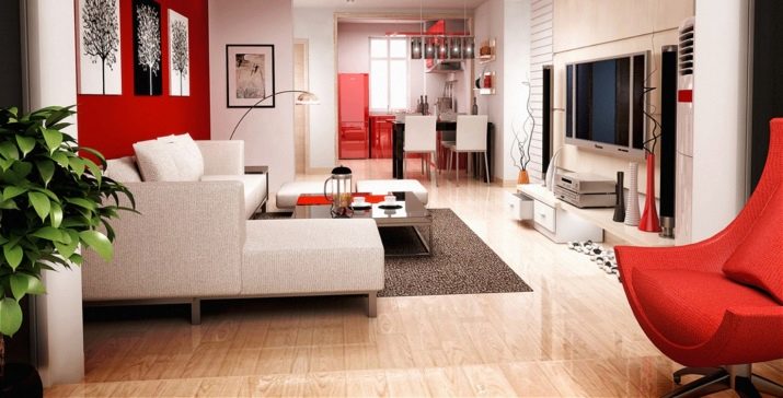 - Eine der „gefährlichsten“ Farben im Innenraum ist Rot. In großen Mengen erzeugt es eine aggressive Stimmung, die den Komfort und die Gemütlichkeit zu Hause zerstört. Um es in das Dekor einzutragen, sollte es dosiert werden, da es viel Aufmerksamkeit erregt und den Rest des Innenraums überschatten kann.