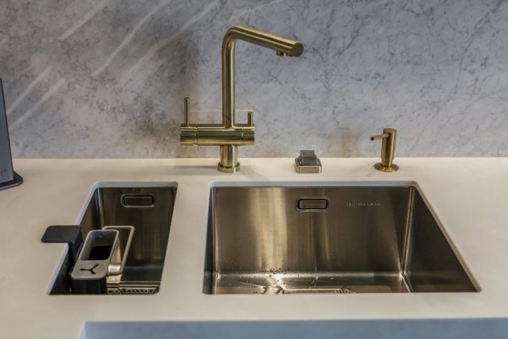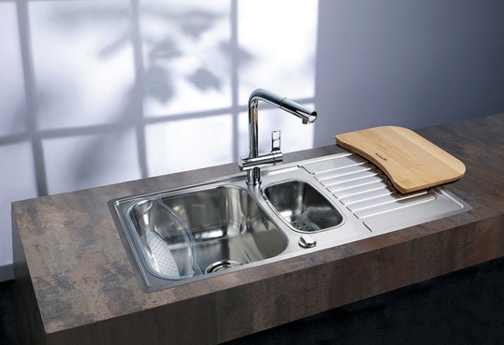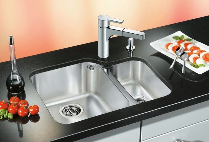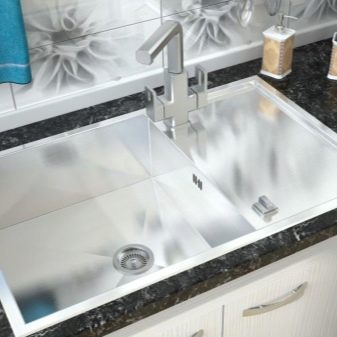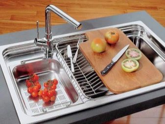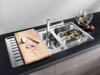 Wenn die Spüle mit zwei Schalen ausgestattet ist, ist es sehr praktisch, eine davon kann zum Ablegen von ungewaschenem Geschirr, zum Auftauen von Lebensmitteln und für andere Zwecke verwendet werden.
