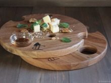 Am beliebtesten sind Servierbretter aus Holz, damit Sie Produkte mit der ungewöhnlichsten Form finden. Dieses Accessoire ist ideal zum Servieren von Burgern, Sushi, Barbecue, Pizza, Fisch, Fleisch oder Käsescheiben. Solche Produkte werden in der Regel hergestellt aus Eiche, Buche, Olive oder Erle. Und Sie können auch gemachte Instanzen treffen aus Bambus.
