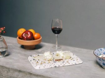Zum bequemen Servieren von Fisch- oder Fleischgerichten sollten Sie auf die sogenannten Grillbretter achten. Dies ist eine in Holz gerahmte Granitplatte mit speziellen Löchern für kleine Tassen und Soßenboote. Sie können auch Naturmarmor wählen, der alle oben genannten Eigenschaften aufweist.