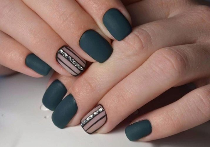 Schön ist auch die Kombination aus Mattlack mit Schleierakzenten, die mit Glitzer oder kleinen Strasssteinen verziert sind. Dies kann das Design sein: