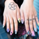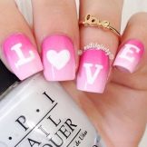 Das Malen auf Nägeln in Form verschiedener Phrasen und Inschriften ist in letzter Zeit ebenfalls in Mode gekommen. Meistens wird die Zeichnung in schwarzer, weißer oder goldener Farbe auf einer Kontrastbeschichtung ausgeführt.Appetitliche Nude-Töne in einer matten oder glänzenden Version gelten als modische Basis. Sie können solche Inschriften mit einem Pinsel unter Verwendung von Schablonen oder Aufklebern erstellen. Neben bekannten Phrasen und Hieroglyphen werden die Namen beliebter Marken und Kultmarken von Kleidung verwendet. Sie können sowohl in der Originalform als auch in Ihrer eigenen Handschrift auf die Nägel aufgetragen werden.