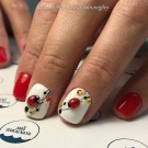 Eine Maniküre mit Aufklebern oder sehr beliebten Stempeln wird auch von Profis für Anfänger empfohlen. Diese Techniken sind einfach durchzuführen und wirken wie tiefes Malen.Für die schnelle Umwandlung einfarbiger Nägel sind Briefmarken mit beliebten Figuren und Mustern sehr praktisch. Abdrücke werden in der Regel mit goldener, silberner oder weißer Farbe ausgeführt. Sie können sich mit einem neuen lustigen Design zufrieden geben, vor allem das resultierende Bild sorgfältig reparieren.