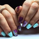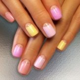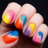 - Multicolor wird durch eine Vielzahl von Techniken gefördert. Selbst die bescheidenste Mädchenetikette verbietet nicht, jeden Nagel in seiner eigenen Farbe zu malen. Die Hauptsache ist, dass die Farben in Harmonie miteinander sind. Und die Ideen von Nagelkunst-Experten und Ihre eigene Fantasie werden Ihnen Ideen erzählen.