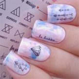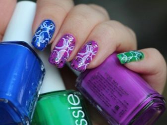Daher lohnt es sich, vor dem Zeichnen hygienische Bäder durchzuführen und die Nagelplatte und die Nagelhaut aufzuräumen. Wenn es wenig Erfahrung mit der Erstellung von Nail Art gibt, empfehlen Fachleute die Verwendung von Schablonen, um schöne tatsächliche Muster zu erstellen.