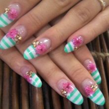 Um bis zum Sommer schöne Nägel zu entwerfen, möchte ich nicht nur Mütter, sondern auch ihre Töchter. Die Modebranche bietet coole Maniküreoptionen für Teenager. Ideen werden natürlich von erwachsenen Damen ausspioniert. Beispiele für tatsächliche Maniküre sind auch die Idole von Mädchen, bekannten Medienpersönlichkeiten.
