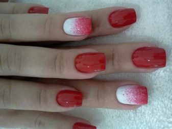 Leidenschaftliches Rot wird zum Liebling der Partygirls. Es wird durch verschiedene Accessoires ergänzt, von Strasssteinen und Goldglitzern bis hin zu individuellem Themenschmuck und Nagelpiercings. Gute helle Farbe und in einem monochrom glänzenden Design und in der Verlaufstechnik.