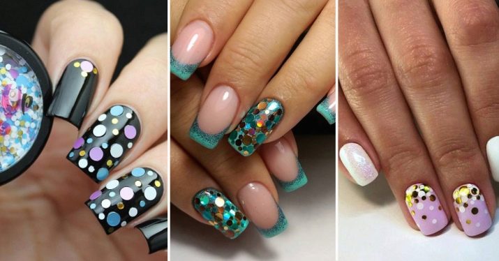 UV-Lack-, Neon- und Säurefarben eignen sich am besten für eine Disco. Sie können auffällige Maniküren mit dem Metallic-Effekt oder mit dem Effekt von Glasscherben auf Nägeln herstellen. Dunkler Lack ist auch besser links und bevorzugt in der Herbst-Winter-Saison. Die Ausnahme bildet der zeitlose Klassiker Schwarz, insbesondere in mattem Finish, sowie die modische Farbe Marsala.