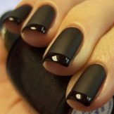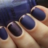 - Sie können einen Nagel glänzend machen und den Rest mit mattem Lack abdecken oder umgekehrt. Dieses Design ist einfach, aber weil es nicht weniger attraktiv wird. Sogar das Gel mit der Wirkung eines Katzenauges, das ziemlich langweilig ist, sieht in einem matten Finish neu aus. Diese Idee kann sicher übernommen werden.