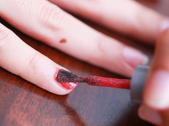 - Malen Sie den Nagel in einer oder mehreren Schichten mit Lack, bis die gewünschte Beschichtungsintensität erreicht ist.