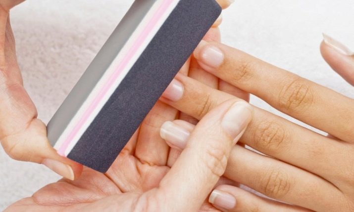 - Wir verarbeiten Nägel und führen eine saubere Maniküre durch. Denken Sie daran, dass jede Unebenheit der Nagelplatte beseitigt werden muss.