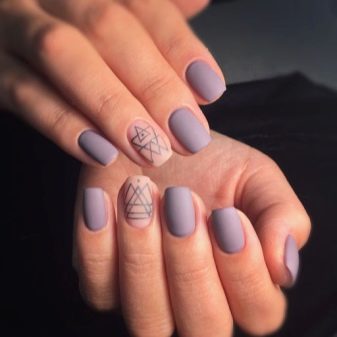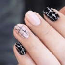 Bleibt in Trend und Maniküre mit geometrischen Formen. Eine solche Maniküre ist einfach alleine zu machen, die Hauptsache ist, Fantasie zu zeigen.