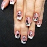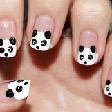 Eine einfache französische Maniküre kann in eine interessante und lustige verwandelt werden, wenn ihr weißer Teil unter das Gesicht eines Pandas oder einer Katze gemalt wird.