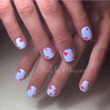 Herzen und Erbsen sind ein Anlass für die Fantasien von Klassenkameraden, weil viele Highschool-Mädchen ihre erste naive Liebe erfahren. Maniküre mit allen Arten von Schulsachen wird ebenfalls relevant sein: Auf den Nägeln können Sie Formeln, Globen, eine Weltkarte, Notizbuchblätter und vieles mehr darstellen.