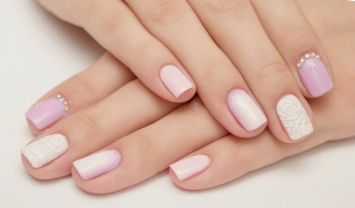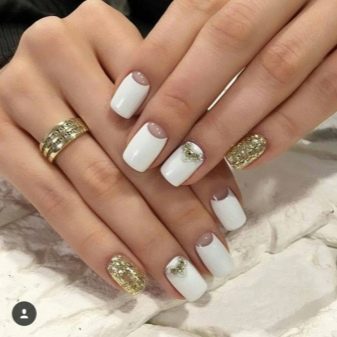 - Nude Shades Maniküre - Es ist immer modisch und stilvoll. Damit eine solche Maniküre nicht sehr bescheiden erscheint, können Sie sie mit mehreren Farbtönen variieren.