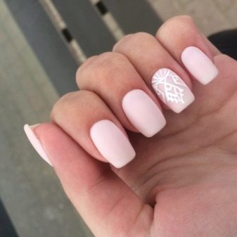 - Strenge matte Maniküre Sie können auch dekorieren, indem Sie mehrere Nägel mit Perlen einreiben. Monochromatisch glänzend ergänzt perfekt die kleinen Kieselsteine, die die Schiene an einem Finger oder Stück für Stück an jedem festlegt.