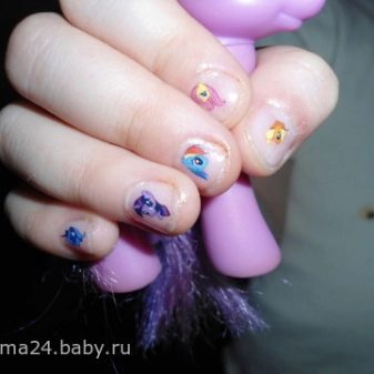 Mädchen in diesem Alter sind offen für Experimente. Alle Arten von Aufklebern und Siegeln für die Maniküre werden zu ihrer Rettung kommen. Sie werden dazu beitragen, ein schönes und originelles Design zu schaffen.
