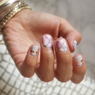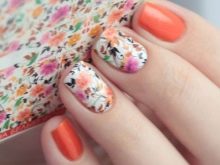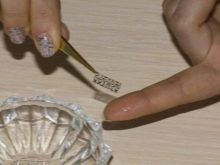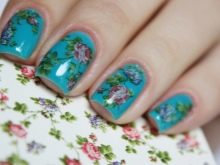 Zuerst müssen Sie auf den Nägeln eine hygienische Maniküre durchführen und dann die Beschichtung auftragen. Sobald die Oberfläche des Lacks getrocknet ist, muss der Schieber in Wasser angefeuchtet werden, bis sich das Bild ablöst. Das dekorative Element wird auf den Nagel übertragen und mit einem transparenten Lack fixiert.