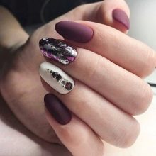 Für die Herbstsaison eignen sich eine matte Maniküre, ein Farbverlauf, eine Beschichtung mit Samteffekt und ein Zeitungsdekor. Der Herbst ist kein Grund, alle hellen Lacke bis zur nächsten Saison zu entfernen. Zu dieser Jahreszeit sind die Farben Burgund, Grau, Pflaume und Braun relevant.