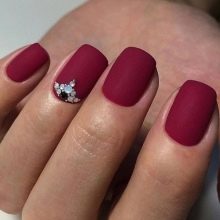 Im Winter sind Maniküre Französisch, Farbverlauf, Uni, Stempeln, Herde, Katzenauge, mattes, nacktes Design relevant. Wenn wir mehr über die einfache Maniküre sprechen, dann ist dies einer der Trends der Saison. Die beliebtesten Farben: Gold, Silber, Dunkelrot, Schwarz, Burgund, Creme. Sie können den Ton des Lacks je nach Kleidungsstil oder Stimmung ändern. Um die einfache Maniküre leicht zu diversifizieren, können Sie Strass, Pailletten und Kieselsteine hinzufügen.
