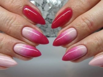 Für Experimentfans können Sie die Technik der Durchführung eines Verlaufs empfehlen, dessen Kern glatte Übergänge von einer Farbe zur anderen sind. Das Ergebnis wird alle Erwartungen übertreffen und auf unterschiedlich langen Nägeln spektakulär aussehen.