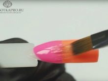 Dehnen Sie dann mit einem Pinsel vorsichtig die Lackränder, damit sie so weit wie möglich zu einem Ganzen verschmelzen. Das gleiche Verfahren wird mit nachfolgenden Schichten durchgeführt. Die Spitze des Nagels ist die dunkelste. Aus Gründen der Übersichtlichkeit können Sie es am Ende erneut einkreisen. Nachdem der Lack vollständig getrocknet ist, wird ein Fixiermittel aufgetragen und die Creme entfernt.