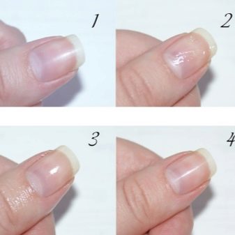 Es ist sehr wichtig, nicht fest auf den Schwamm zu drücken, da dieser mehr Lack aufnehmen kannals auf den Nagel aufzutragen oder tiefe Abdrücke zu hinterlassen, die später nur schwer mit einem Pinsel zu entfernen sind. Die Anwendung kann für eine hellere Farbe mehrmals wiederholt werden. Für jeden Nagel muss die Zusammensetzung erneut gemischt werden, da sie nicht nur schnell trocknet, sondern teilweise vom Schwamm absorbiert wird. Dann wird die Farbe mit einem Fixiermittel bedeckt, das hilft, kleine Unregelmäßigkeiten vor dem Schwamm zu verbergen.