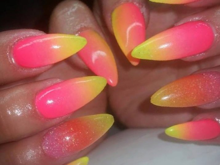 Modernes Nageldesign bietet modischen Frauen die unglaublichsten Farbkombinationen. Gelbe und rosa Farben in der Maniküre sind in dieser Saison besonders beliebt. Dieser Trend wird auch von neuen Arbeitstechniken angetrieben. Eine dieser modischen Optionen ist Ombre.