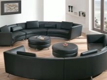 Heutzutage verwenden Designer häufig diese Art von Möbeln. beim Dekorieren von Lounges für Büropersonal. Mit Hilfe von runden Sofas ist es möglich, den Raumbereich so sparsam und rationell wie möglich zu nutzen. Diese Option ist besonders für Firmeninhaber von Vorteil, da Sie in einem Raum ohne Komfortverlust eine Küche und einen vollwertigen Ort zum Entspannen einrichten können, ohne dass zusätzliche Möbel erforderlich sind - Stühle, Sessel.
