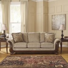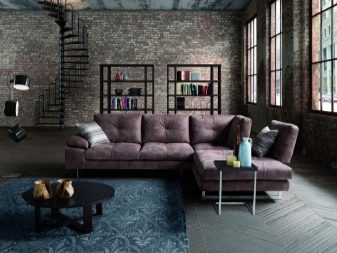 Die Möbel haben pastellfarbene, ruhige Farben, fließende Formen, die meisten Designerprodukte sind multifunktional - bei Bedarf verwandeln sie sich in einen vollwertigen Schlafplatz. Das Gegenteil ist Stil Dachboden wo Möbel strenge Formen und ein Minimum an Dekorationen haben. Loft-Sofas mit gerader Rückenlehne, Armlehnen und ohne weiche Kissen eignen sich eher für Büro- oder Geschäftsräume, sind jedoch häufig in Wohnräumen zu finden. Klassische und eckige Loft-Designs lassen sich erfolgreich mit Stilen wie kombinieren Avantgarde, Renaissance oder Funktionalismus.