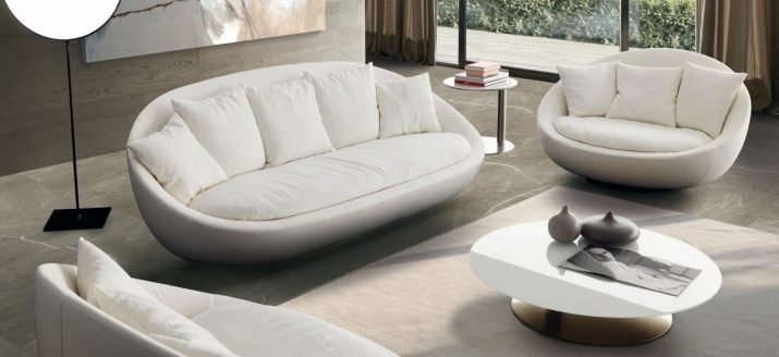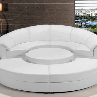 Runde Sofamodelle nehmen einen der ersten Plätze in der Weltgeschichte der Polstermöbel ein. Designprodukte dieser Form waren bereits im 19. Jahrhundert sehr beliebt - sie wurden durch die Innenräume von Ruheräumen von Vertretern der Aristokratie ergänzt, als sich große Unternehmen in ihren Häusern versammelten. Runde Sofas eignen sich perfekt für Räume mit großen Flächen, sie bieten eine Art Luxus und Extravaganz, behalten aber gleichzeitig ein Gefühl von Wärme und Gemütlichkeit.