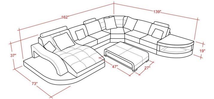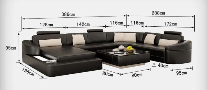 Bei modernen Produkten beträgt die Länge einer separaten Einheit durchschnittlich 150 cm, sodass jedes modulare Sofa im entfalteten Zustand mindestens 10 Personen aufnehmen kann.