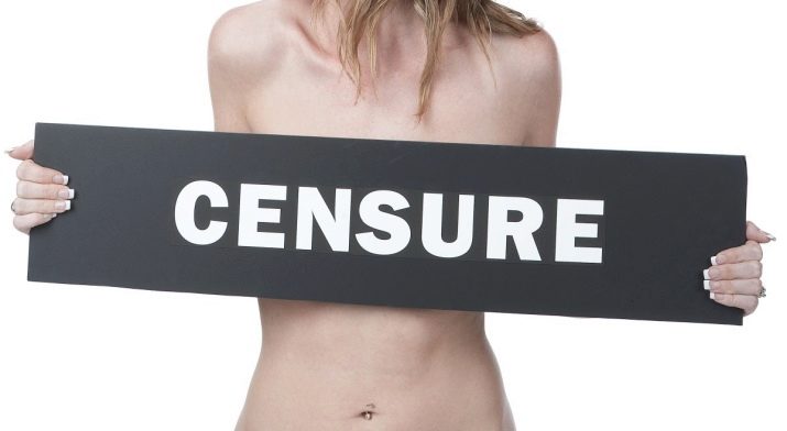 Das fleischfarbene Oberteil und das gleiche Höschen erzeugen die völlige Illusion von Nacktheit. Fotos in diesem Badeanzug verpassen nicht einmal die halbblinde Internet-Zensur. Über die Brustwarzen verläuft ein dunkler Balken, der normalerweise unangemessenen Inhalt auf dem Foto blockiert.