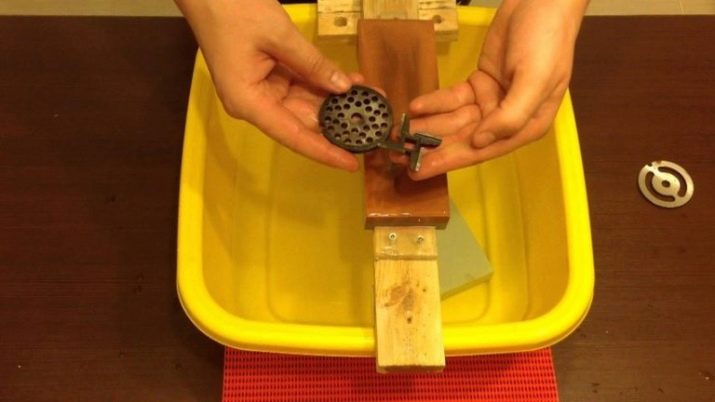 Jetzt müssen Sie beide Elemente gut unter fließendem Wasser abspülen, um kleine Metallspäne abzuwaschen, einen Fleischwolf zusammenzubauen und ein Stück Fleisch zu scrollen. Sie werden den Unterschied sofort spüren und verstehen, ob Sie mit dem Schärfen gut genug zurechtgekommen sind. Wenn nicht, wiederholen Sie den gesamten Vorgang erneut.