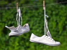 Trocknen Sie die Schuhe nach dem Waschen auf besondere Weise. Es wird weißes Papier hineingestampft, das die erforderliche Form ergibt. Während des Trocknens nimmt das Papier Feuchtigkeit von den gewaschenen Gegenständen auf und verhindert so, dass diese ihre Form ändern. Bei Bedarf wird nasses Papier entfernt und durch trockenes Papier ersetzt. Zum Trocknen benötigen Sie weißes Papier. Sie können die Zeitung nicht verwenden: Es können Flecken davon zurückbleiben. Im Sommer werden gewaschene Schuhe am besten auf den Balkon gebracht. Im Winter kann es in der Nähe der Batterie oder darauf platziert werden, nachdem der Heizkörper mit einem Badetuch abgedeckt wurde. Trocknen ist jedoch nicht die Batterie - nicht der beste Weg. Ideal gewaschene Kleidung sollte natürlich bei normaler Temperatur getrocknet werden. An einem kalten Ort trocknen sie lange, was zu einem unangenehmen Geruch führen kann.