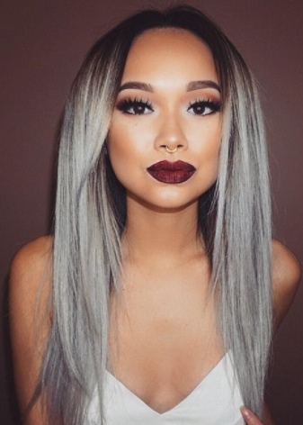 Ein interessanter Effekt kann von denen erzielt werden, die einen bestimmten Prozentsatz an grauem Haar haben. In diesem Fall spielt die natürliche Farbe eine nicht primäre Rolle. Das Wichtigste dabei ist, Farben und Schattierungen richtig zu kombinieren und zu berücksichtigen, dass bei dunklem Haar der Effekt minimal oder gar nicht sichtbar ist.