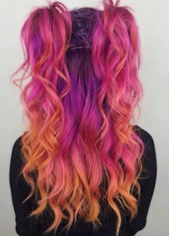 Bei blonden Damen sieht der Übergang zu Rosa oder Lila spektakulär aus - diese Entscheidung macht das Bild stilvoller und mutiger.