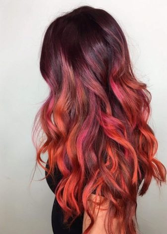 Eine andere trendige Kombination ist eine rote und eine rosa, eine ähnliche Ombre eignet sich für alle Schattierungen hellbrauner Locken, während das Erscheinungsbild eher sanft und sehr weiblich ist.