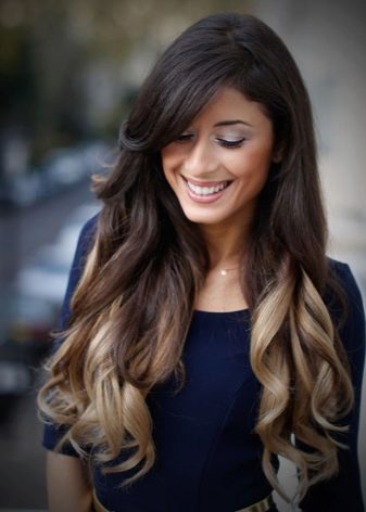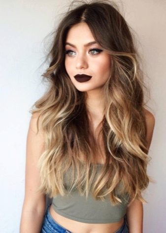 Lange Zeit glaubte man, dass Ombre auf langen Haaren nur an Brünette geht, aber im Laufe der Zeit haben sich die Färbetechnologien geändert, und heute wird ein Gradient auf Locken jeder Farbe erzeugt.