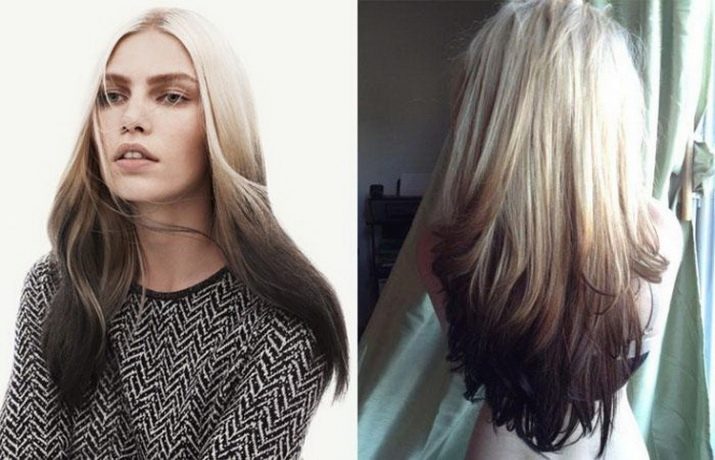 - Skandinavisch - Dies ist eine sehr originelle Technik, hier werden die hellen, fast weißen Wurzeln schwarz, seltener sind die Ränder rot, lila und himbeerfarben getönt. Diese Methode ist optimal für blondhaarige Frauen.