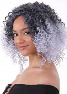 Der beste Ombre-Haarschnitt ist Kaskade. Er wird die Vielfalt der Farben voll und ganz offenbaren. Wellenförmige Locken ergänzen das Bild. Stark lockiges Haar von dunkler Farbe passt zu hellen Farbtönen mit einem scharfen Übergang.