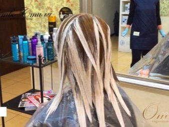 - Klärer aufbewahren auf den Haaren eine bestimmte Zeit. Zu Hause muss keine Folie verwendet werden. Es kann nur verwendet werden, wenn Locken in der Nähe des Gesichts aufgehellt werden. Die Belichtungszeit sollte in der Anleitung abgelesen werden.