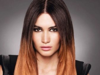 Für Brünette Bei dunkler Haut ist es am besten, Gold- oder sogar Rottöne für das Ombre zu wählen. Braune Haare Sie können helle, aber kalte Blondtöne in der Technik des gepanzerten Ombre wählen. Diese Technik kann das Bild radikal von dunklem zu hellem Haar verändern, ohne das Bild und das Bild insgesamt stark zu beschädigen.