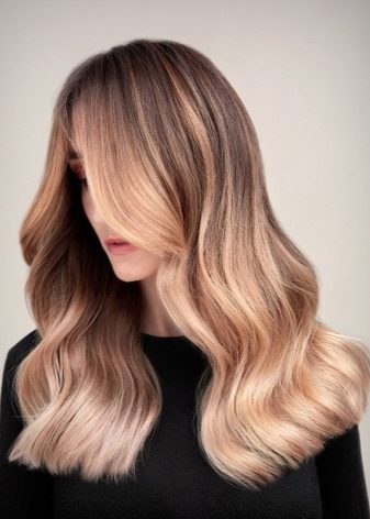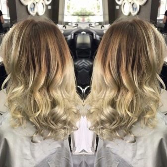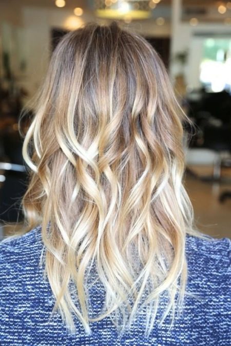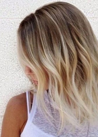 Diese Technik sieht am besten auf blondem Haar aus. Der Übergang zu hellerem Haar erfolgt ebenfalls allmählich, aber näher an den Spitzen werden mehrere Schattierungen gleichzeitig gemischt.